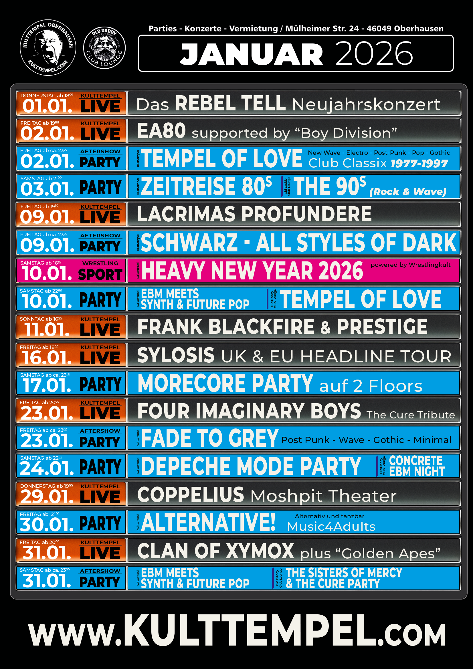 Sa, 03.01.2026- The 90s Party (Rock&Wave)Sa, 10.01.2026- Tempel of Love - Club Classix Mix