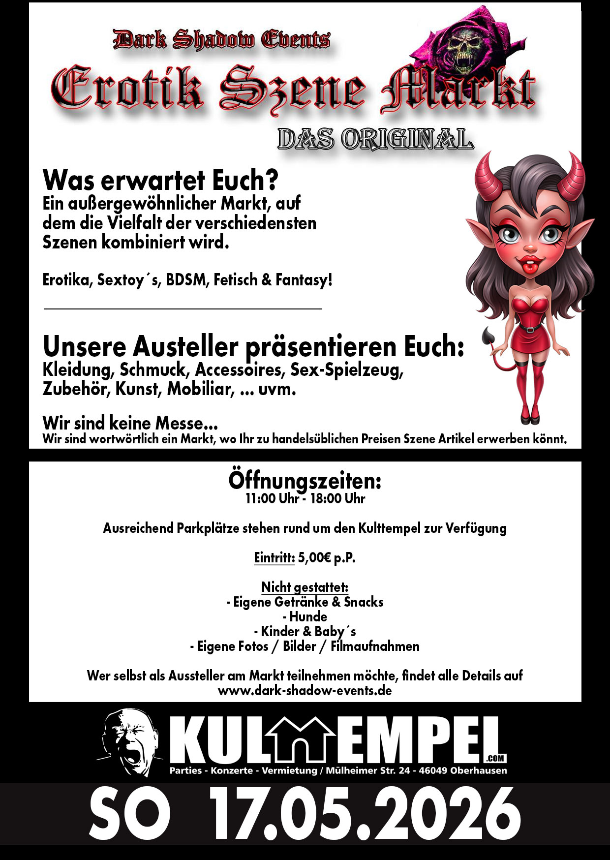 Am 17.05.2026 wird der Erotik-Szene-Markt (ESM) wieder im Kulttempel Oberhausen seine Aussteller präsentieren.