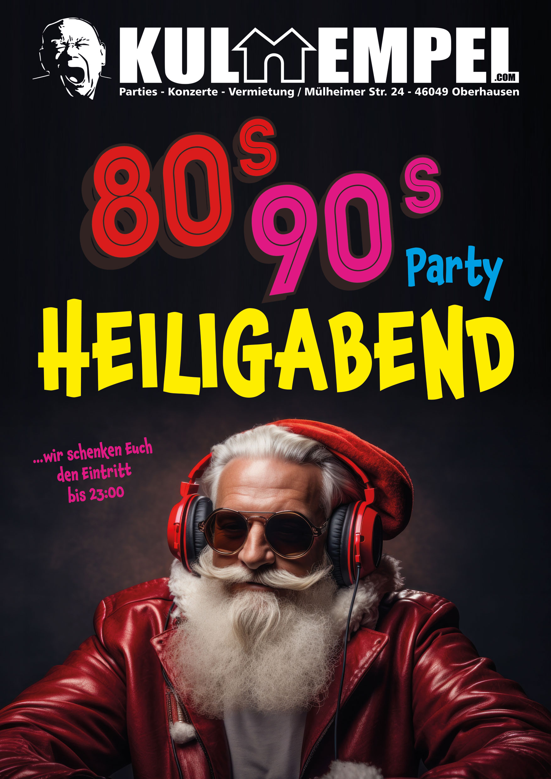 Am Dienstag, 24. Dezember 2024 laden wir Euch zur 80s/90s Party in den Kulttempel in Oberhausen an Heiligabend ein. Wir spielen das Beste aus den beiden Dekaden.